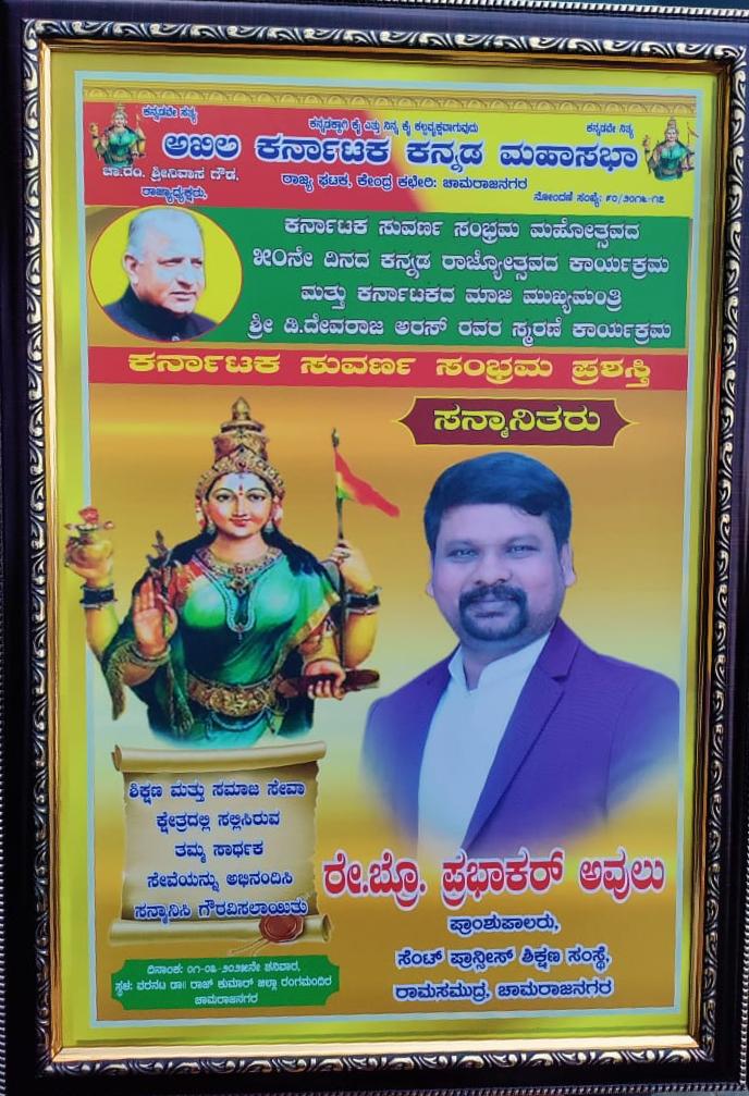 Honourable principal honoured by akhila Karnataka kannada maha sabha .